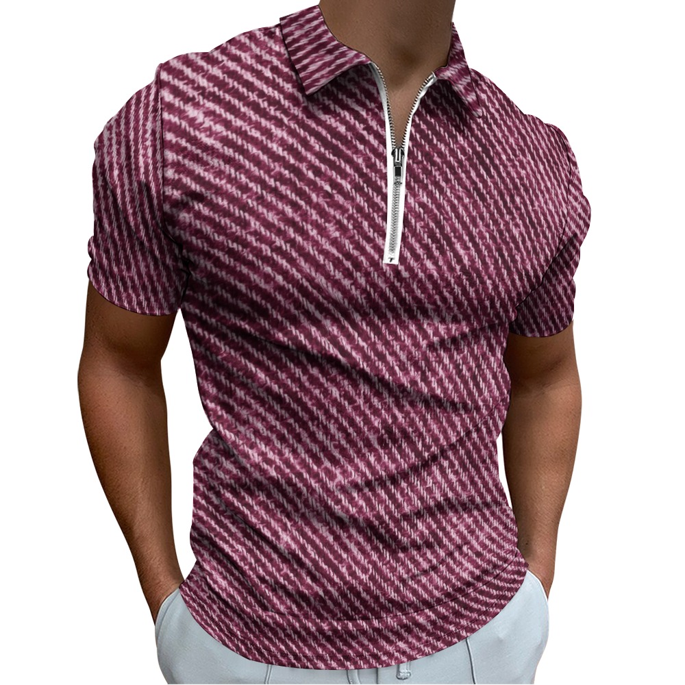 Burgundy Demin Look Short Sleeve Polo Shirt
