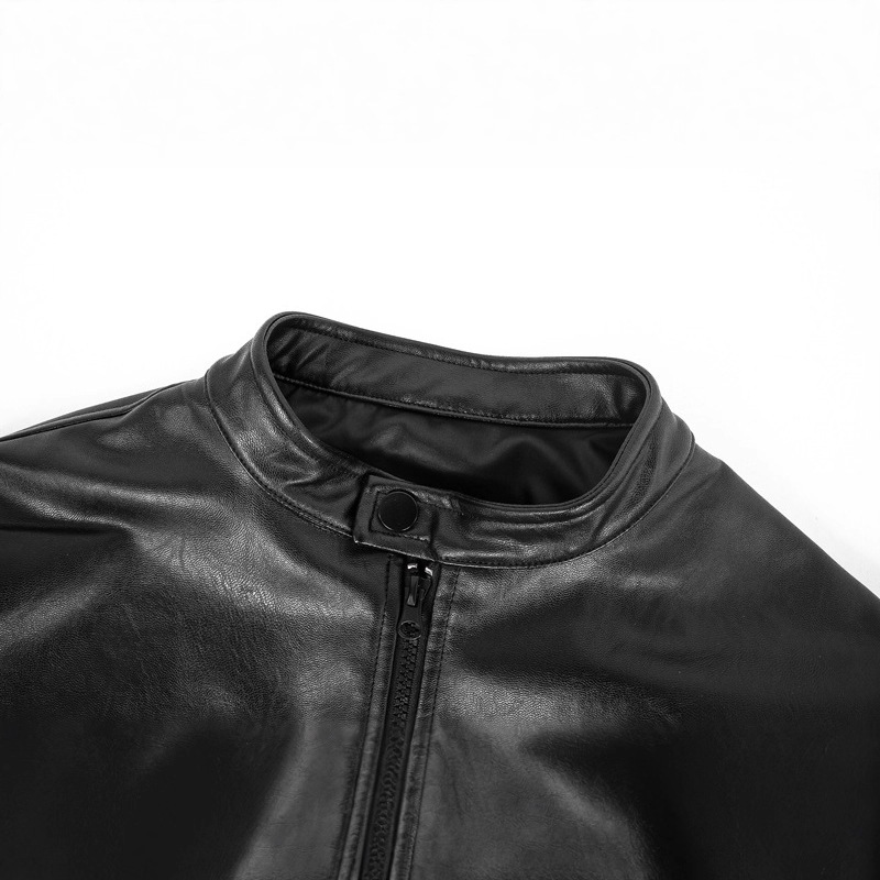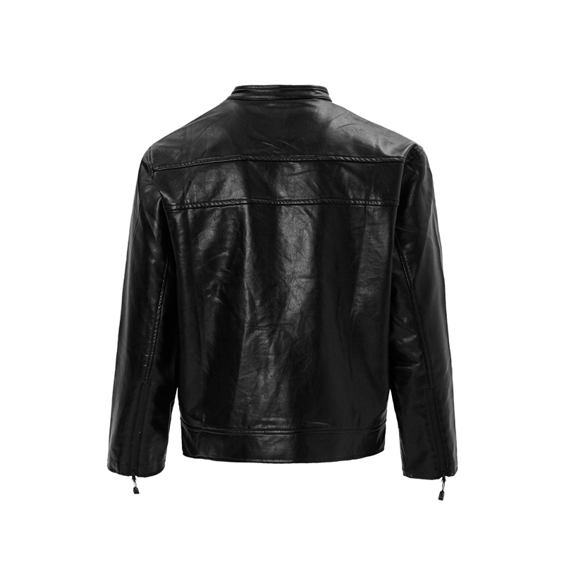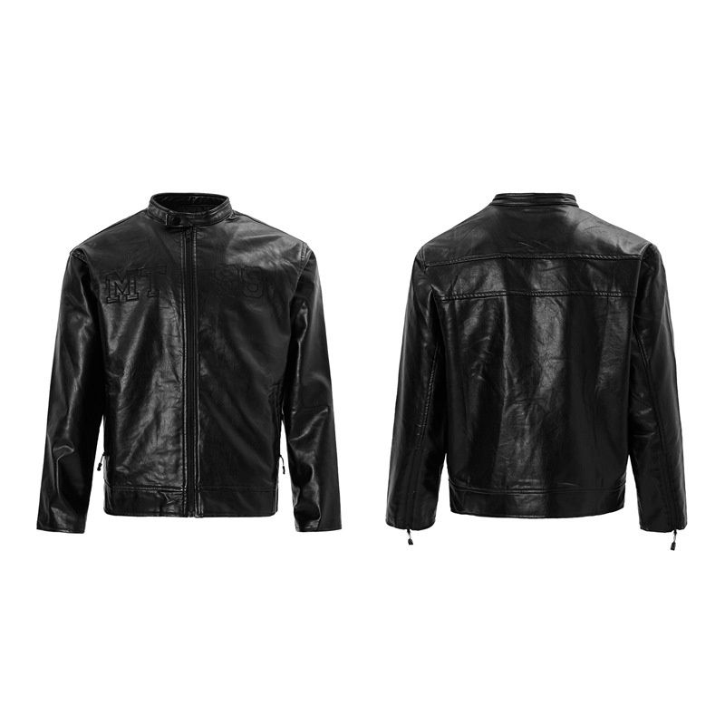 High Street Retro Heavy-duty Steel Stamp Motorcycle Leather Coat Zipper closure PU Leather M, L, XL