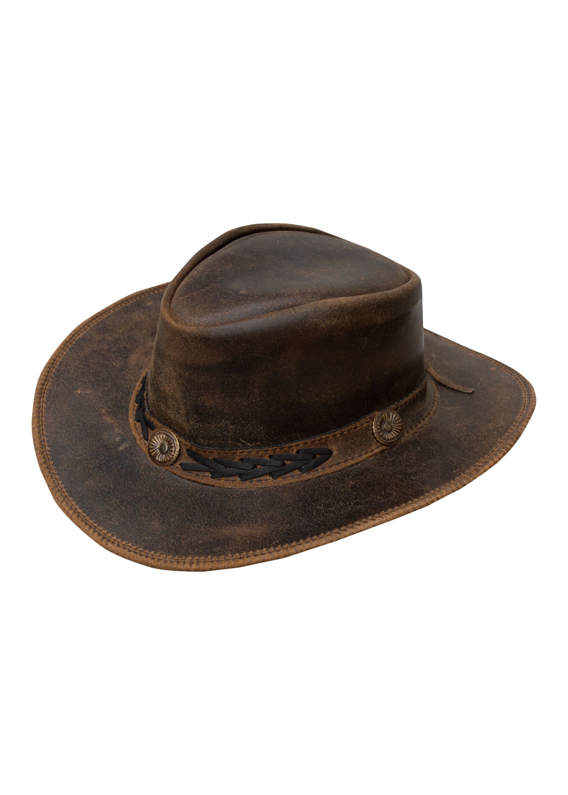 - This brown western cowboy hat is crafted of premium leather. The timeless fashion and iconic brown color are both comfortable as well as sturdy. Our cowboy hats aren’t just for show-through; they’re also made for actual cowboys. Wear this as a summertime cowboy hat, in nightclubs, or as informal everyday headgear.