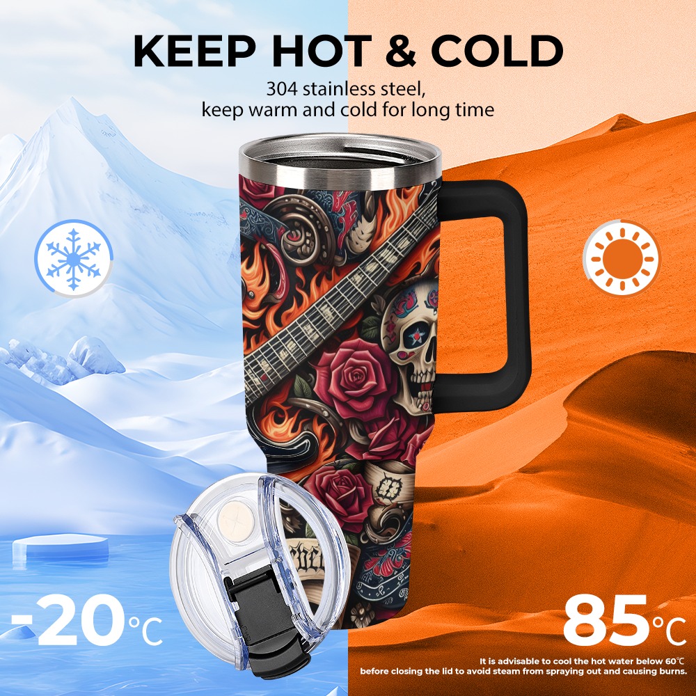 Stainless Steel 40oz Tumbler Vacuum-insulated, heat-insulating, and double-layered for scalding protection. The lid is highly sealed and leak-proof, and it eliminates odors when exposed to hot water.