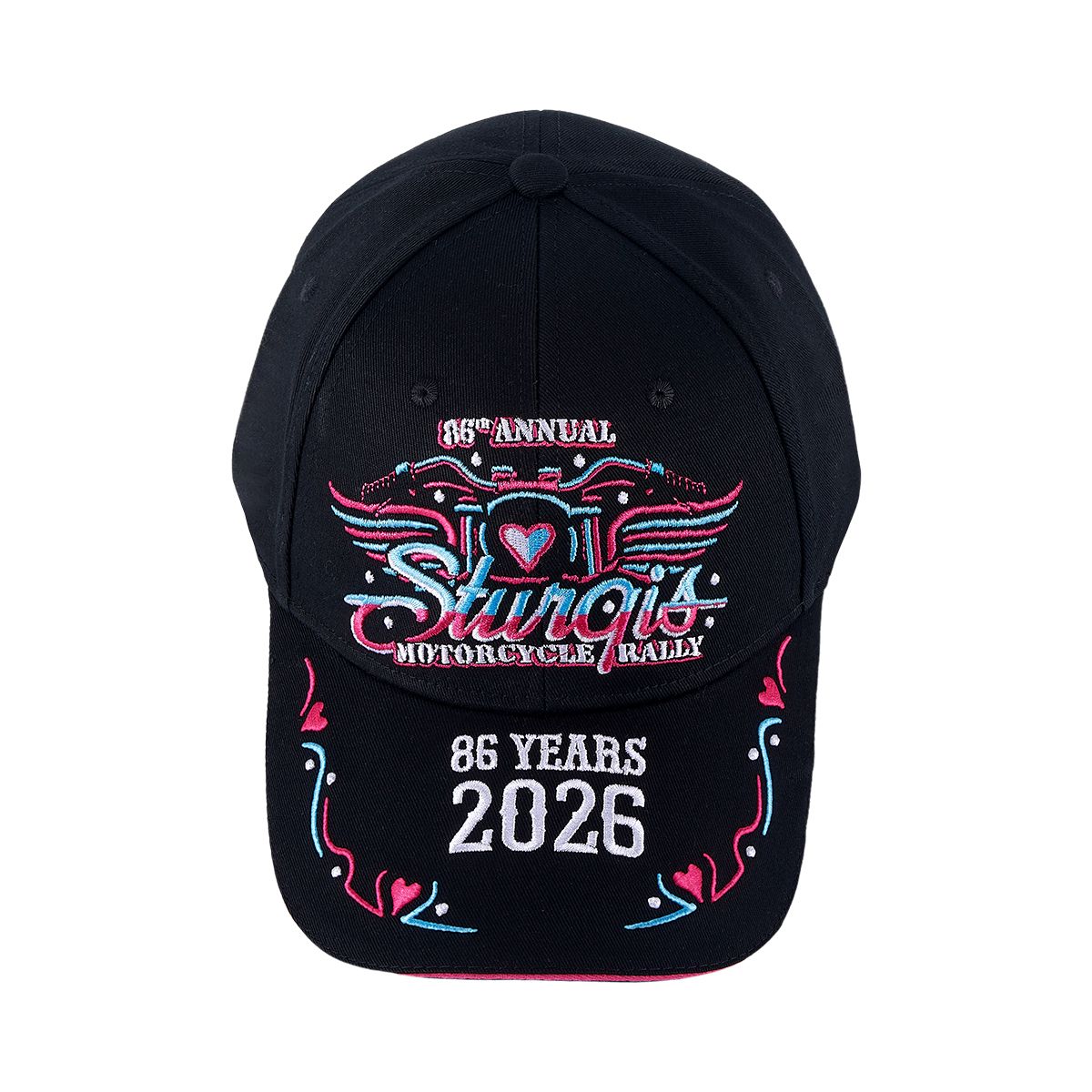 - Sturgis 2026 Hat 86th Motorcycle Rally Cap Motorcycle With Wings Design Adjustable Biker Baseball Cap Blue & Pink Embroidered Souvenir Hat